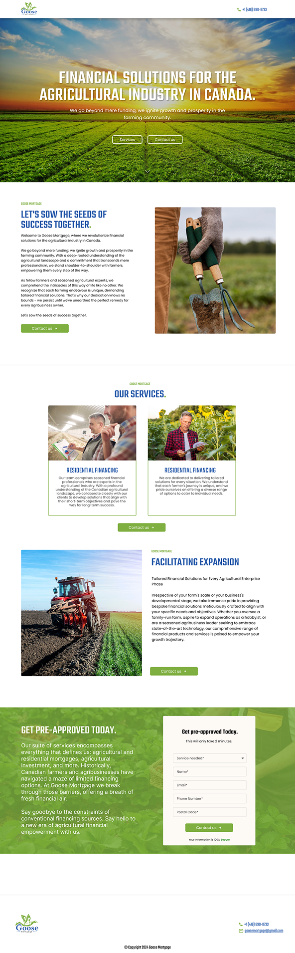 Goose Mortgage needed a clean and professional landing page to capture leads and explain their simplified mortgage process. The goal was to build trust and drive potential clients to schedule a consultation.
