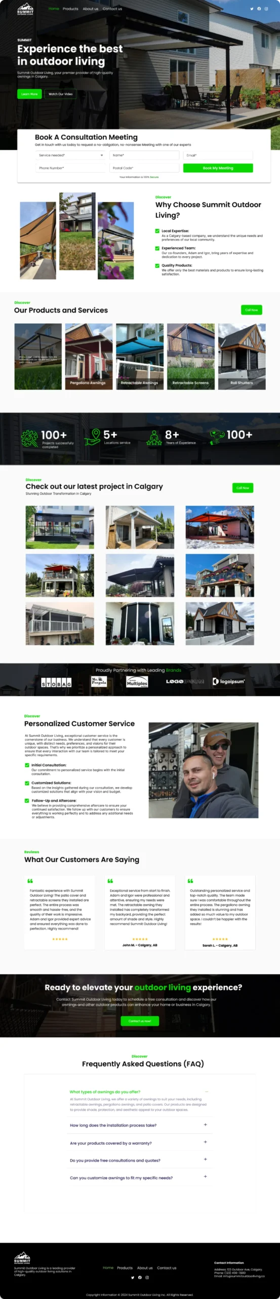 Summit Outdoors Living specializes in high-quality patio covers and awnings for residential outdoor spaces. They needed a professional website to showcase their services, attract local clients, and build credibility.