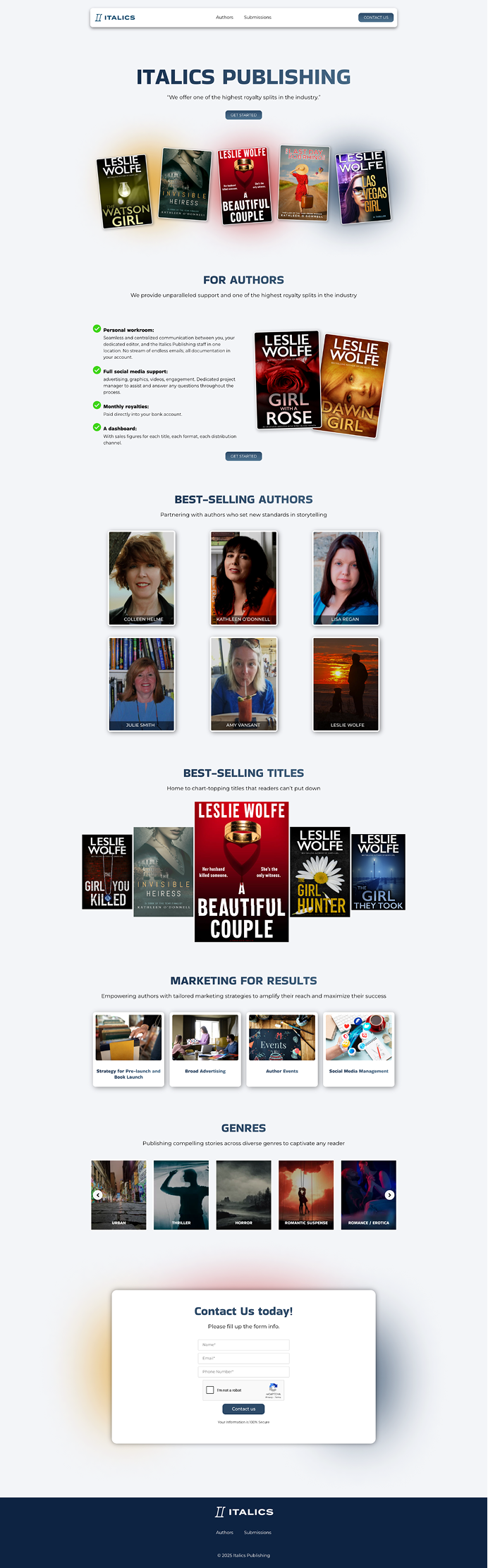 Italics Publishing is a service-based business helping authors bring their books to life through publishing, editing, and marketing. They needed a professional website that clearly presented their offerings and built trust with writers.