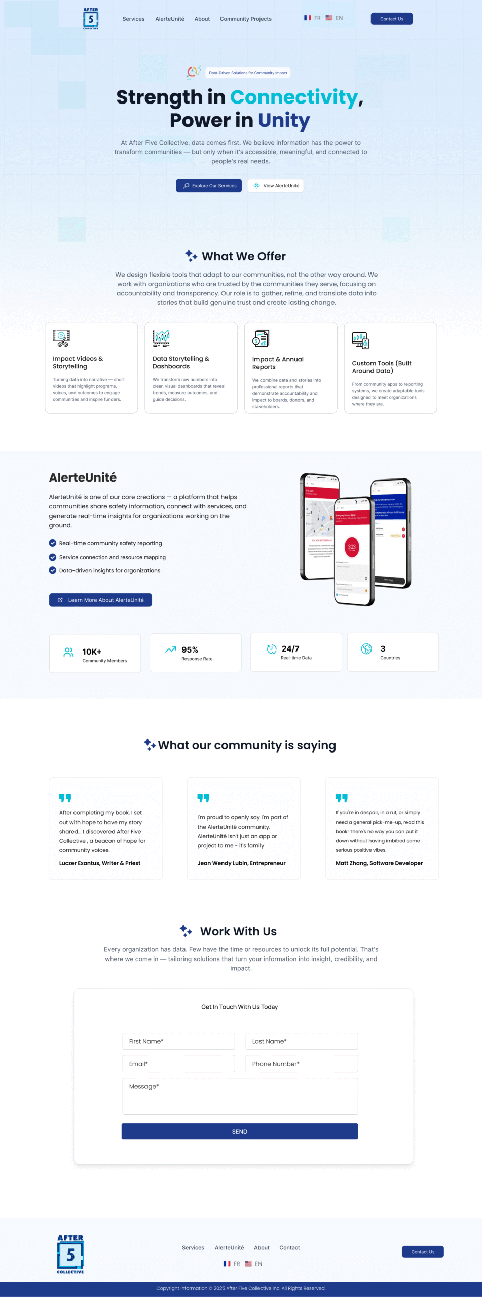 After Five Collective is a mission-driven organization focused on creating tangible impact in Haiti through sustainable projects and community support. They needed a website to communicate their vision, share updates, and inspire donor support.