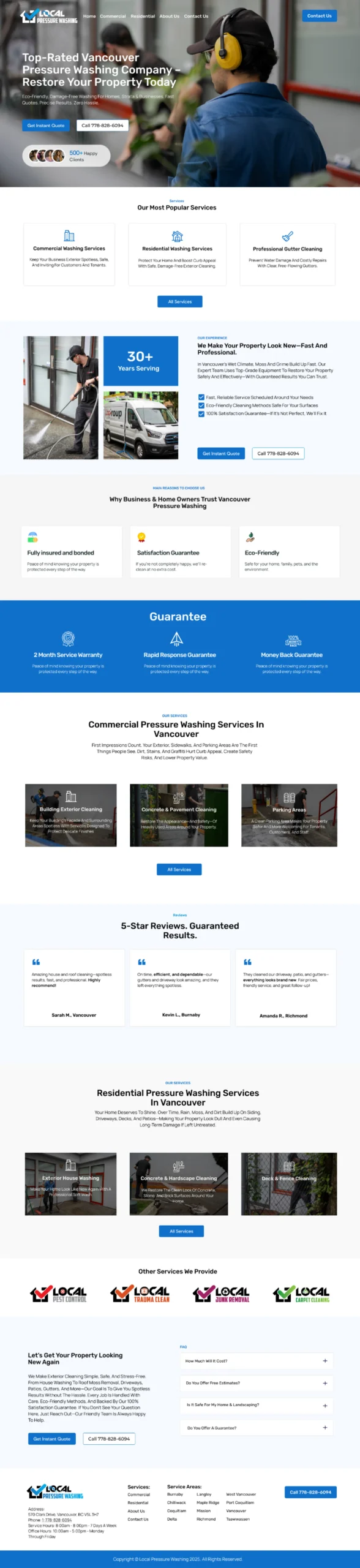 The new website improved lead generation and user engagement, giving Vancouver Pressure Washing a professional online presence that builds trust, increases quote requests, and positions them as a top choice for exterior cleaning services in the region.